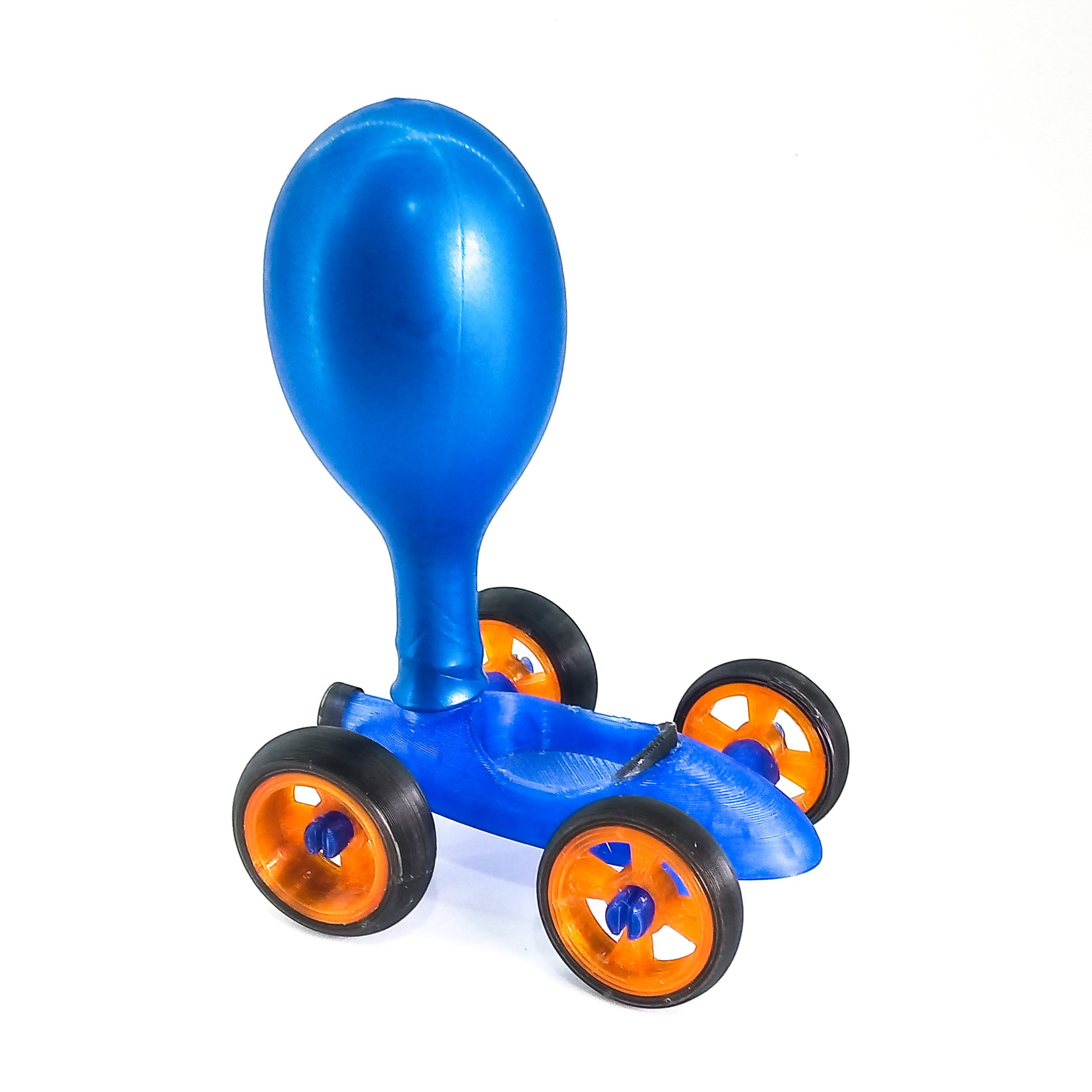 COMO USAR: Encaixa o balão na parte superior e asopra pelo escapamento. Segura aponta do balão evitando que o ar saia até colocar o carrinho no chão, de um leve impulso e o carrinho irá se deslocar até que o balão esvaziar por completo.